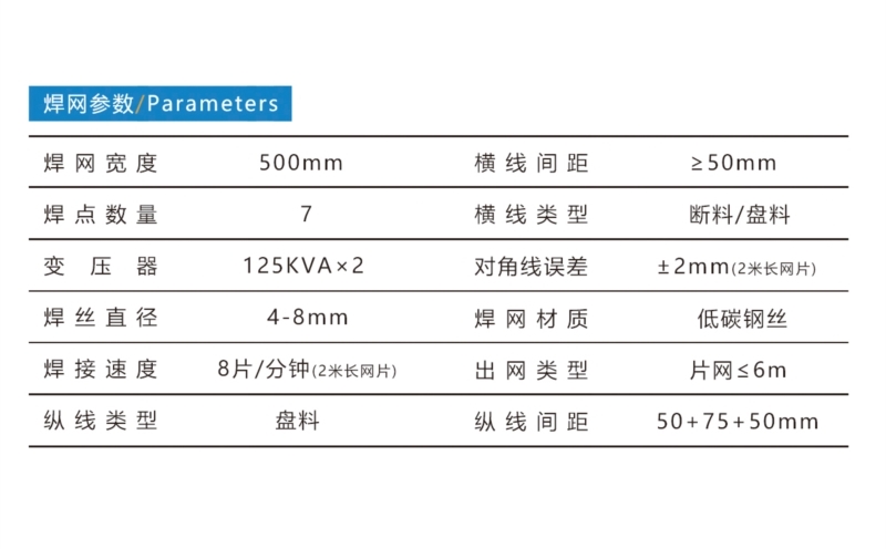 ALC是蒸壓加氣混凝土(Autoclaved lightweight Concrete)的簡(jiǎn)稱,它是以石英砂或粉煤灰、水泥、石灰等為主原料,內(nèi)配雙層雙向冷拔絲鋼筋網(wǎng)片,經(jīng)過高溫蒸汽養(yǎng)護(hù)而成的多氣孔混凝土成型板材;既可做墻體材料,又可做屋面板、樓層板、外墻造型,是一種性能優(yōu)越、安裝簡(jiǎn)便、靈活的成熟建材。加氣板網(wǎng)片焊接生產(chǎn)線,可以高效率地自動(dòng)焊接ALC所需的鋼筋網(wǎng)片。焊點(diǎn)數(shù)量7個(gè),焊網(wǎng)寬度500mm,焊接絲徑4-8mm,每分鐘約焊接8片。標(biāo)準(zhǔn)配置:放線盤、縱線盤絲入料模塊、伺服送網(wǎng)、橫線料斗、焊接主機(jī)、剪網(wǎng)機(jī)、落網(wǎng)機(jī)構(gòu)??蛇x配置:橫線盤料、出網(wǎng)小車、簡(jiǎn)易循環(huán)冷卻器、空壓機(jī)。河北驕陽焊工有限公司,0318-7063097